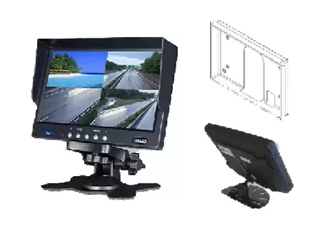 1 Monitor TFT LCD 7" color 12/24V. Quad incorporado con pantalla con selección de cámaras por unidad, dos cámaras a la vez, tres cámaras a la vez o cuatro a la vez en la misma pantalla.