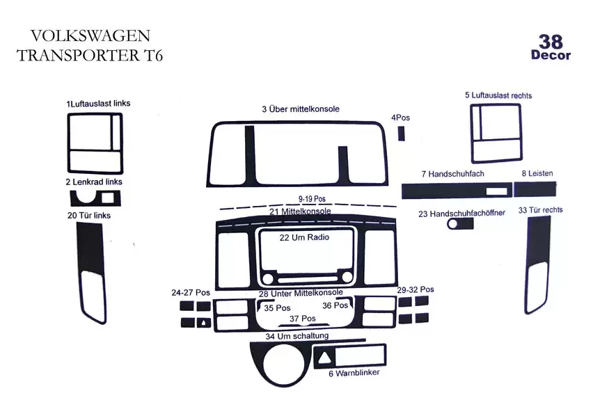 Kit dec. salpicadero VW transporter T6 autocaravana 09-2009> madera 38pzs