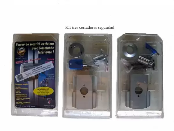 Kit compuesto por una cerradura para la puerta de la vivienda y dos cerraduras para puertas de garaje o cualquier tipo de arcón.