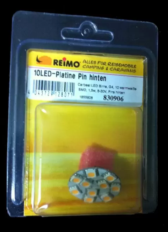 lampara con pins trasero y 10 led , G4 , 1.5w . 8-3cv. , 30mm de diametro.