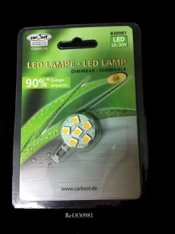 Lampara de 6 led , G4 , 1.2W , 23mm de diametro , 87 lumen y pins de10mm.
