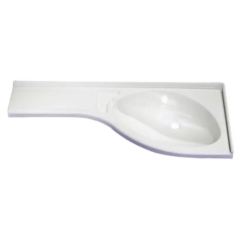 Lavabo de plástico blanco DERECHO con repisa esquinero para caravanas,  autocaravanas o camper.