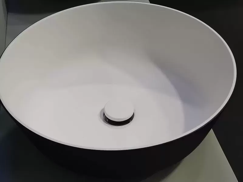 Lavabo de superficie redondo blanco/negro 354x260mm para caravanas autocaravanas y camper.