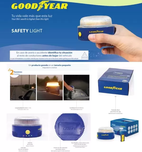 Luz señalización de emergencia GoodYear V16 para caravanas, autocaravanas, camper y 4x4 overland.