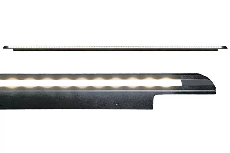 Producto de alta calidad fabricado en aluminio anodizado en COLOR NEGRO con tira iluminación led de 450 lumen.