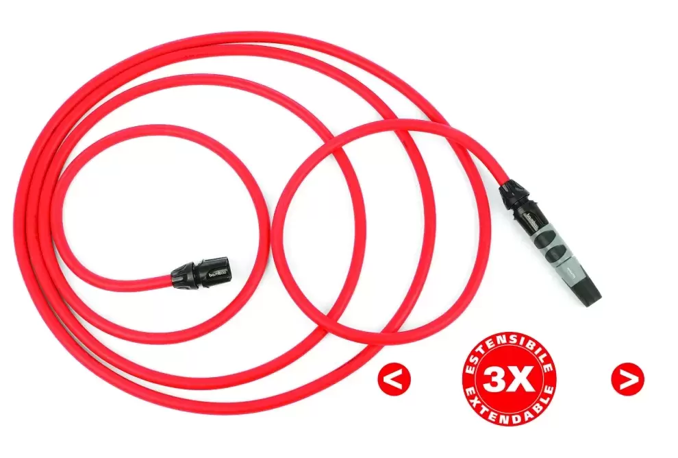 Manguera Bamboo mágica extensible Roja de 5 hasta 15 metros con accesorios, caravanas, autocaravanas, camper y 4x4 overland.