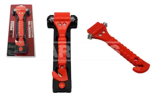 Martillo con punta especial rompe cristales y cuchilla corta cinturones, imprescindible en caso de emergencia.