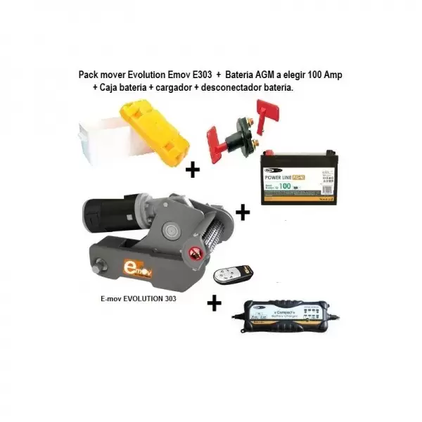 -El mover está provisto de los dos motores para las ruedas, todos los herrajes para su instalación, la centralita que dirije todo el sistema, una bateria de AGM , caja para guardar la bateria, cargador de bateria inteligente, mado de control remoto y desconectador de todo el sistema con caja para instalar en el panel sanwich de la caravana.
