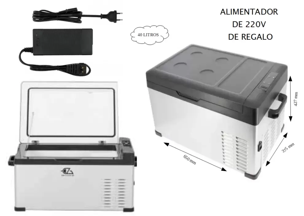 Nevera congelador EZA 40 Litros carcasa metálica compresor 12V +conector a 220V de REGALO, Caravanas, autocaravanas, camper y 4x4 overland.