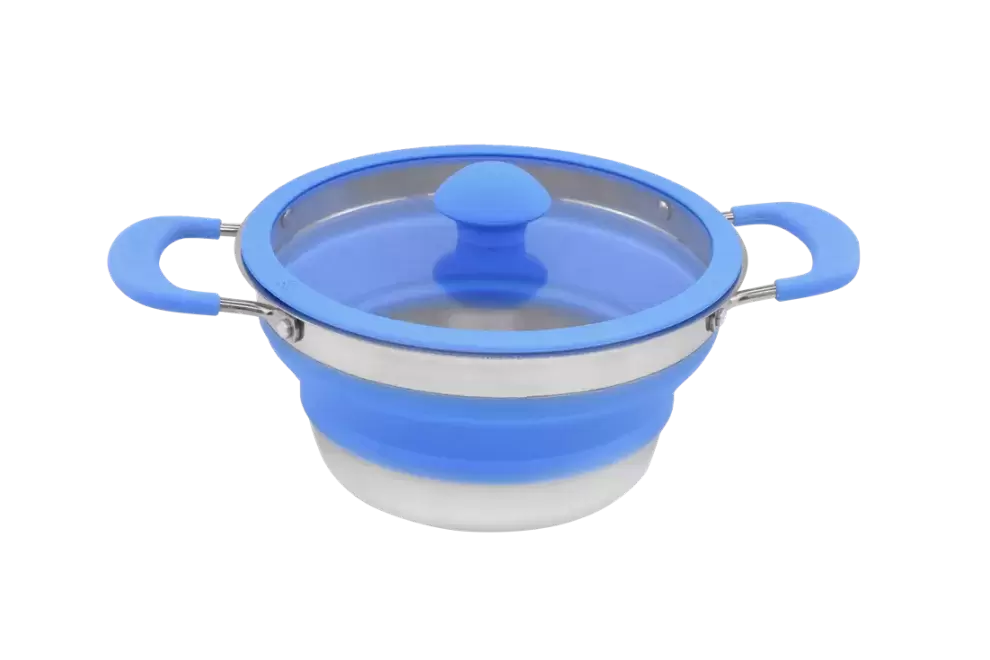 Olla plegable VIAMONDO 1.8 litros de silicona y acero inox camping caravaning 4x4 overland.