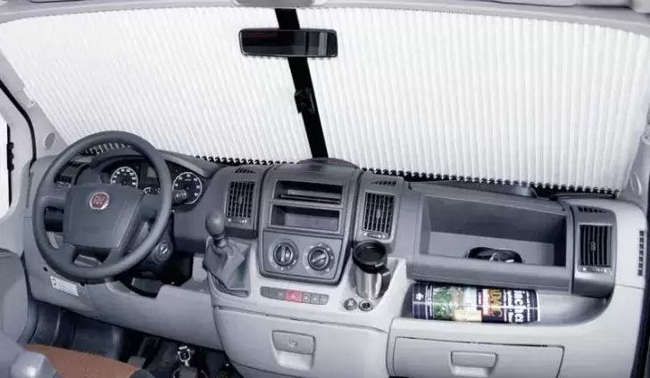 Comodo, facil, rápido y estetico, el oscurecedor frontal Remis se integra perfectamente en su vehículo proporcinandole comodidad e intimidad para cabinas de Fiat Ducato desde año  2014 X290 tonalidad beig