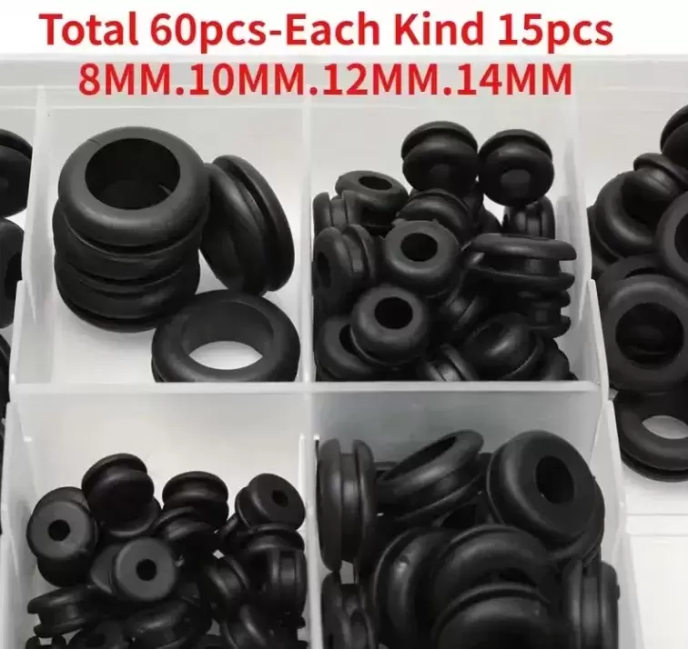 Pack surtido de 60 piezas arandelas de goma pasamuros O-Ring para aplicaciones eléctricas de caravanas, autocaravanas y camper.
