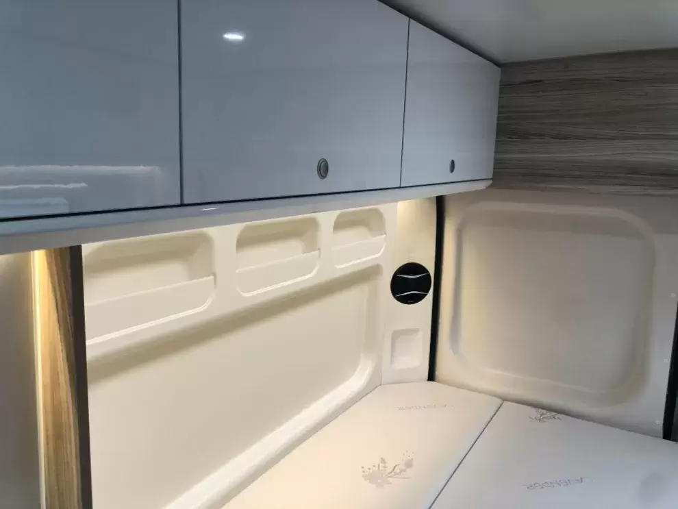 Si el diseño de la caravana no incluye una ventana en la cama, este panel se puede instalar en el lado izquierdo.