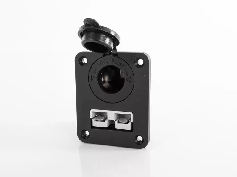 Panel de montaje empotrado muy plano con toma de corriente de 12V/24V y conector empotrado de 50 A (estilo Anderson).