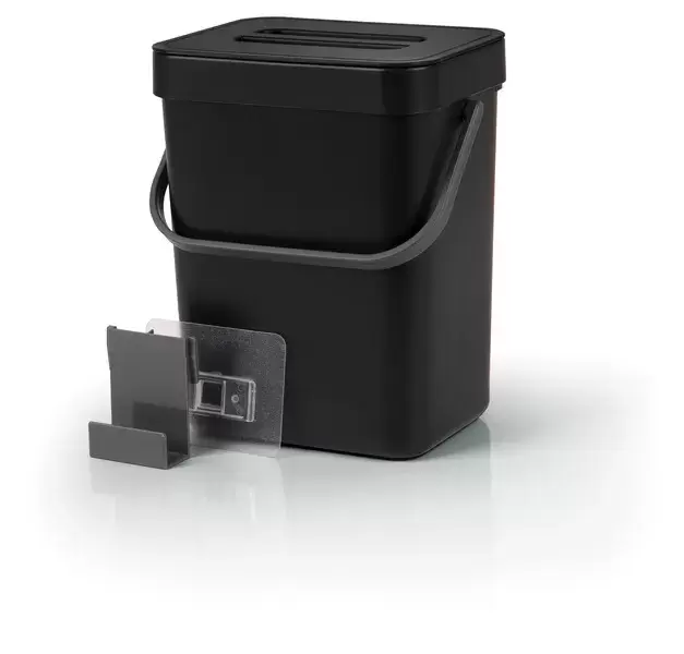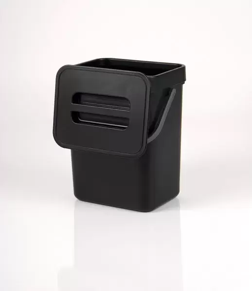 Papelera, cubo de basura 5 litros con asa y tapa color negro, camping caravaning.