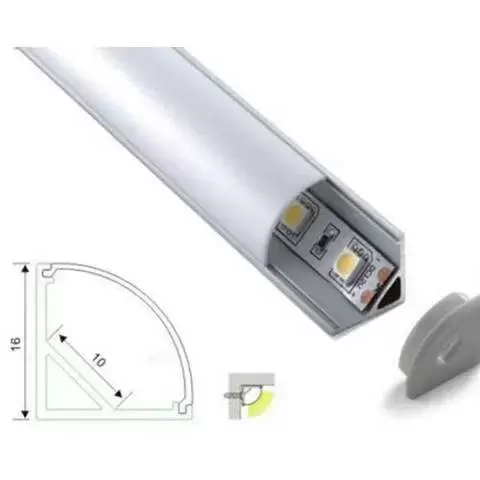 Angulo de aluminio con tapa difusor , ideal para instalar debajo del toldo y asi coseguir un angulo de luz perfecto cosiguiendo un haz de luz en 45º.