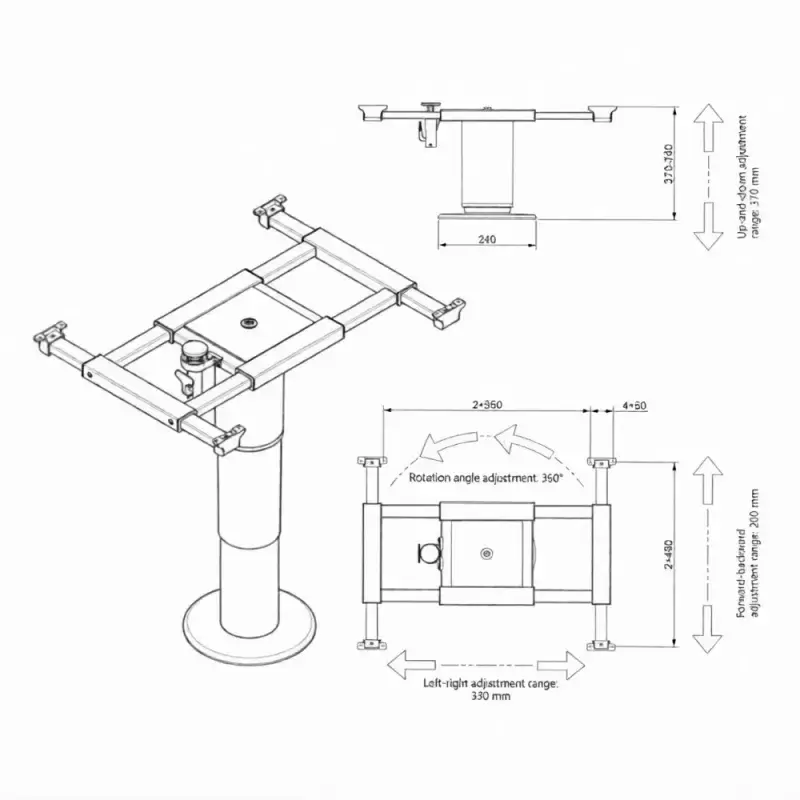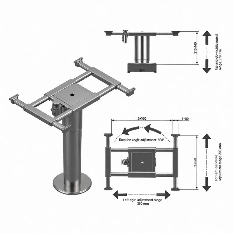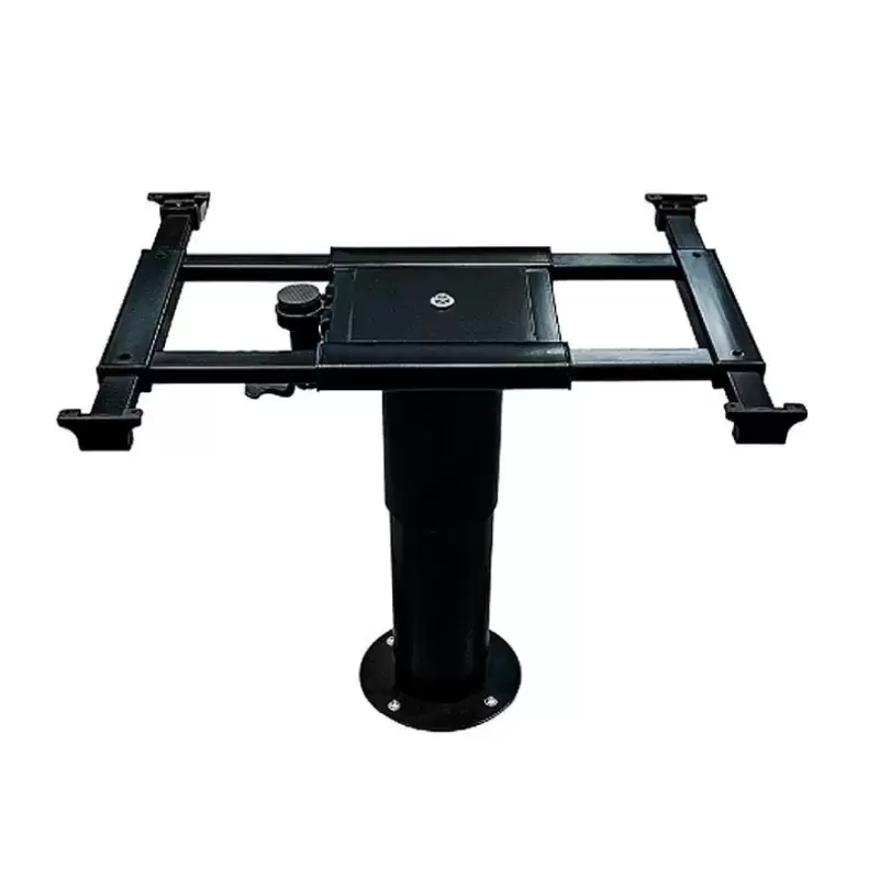Pie de mesa eléctrico telescópico negro deslizante en 4 direcciones y 360º giratorio con pie redondo para caravanas, autocaravanas y camper.