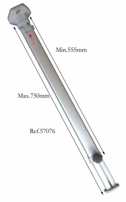 Pie de mesa regulable en altura y plegable por la base, construido en aluminio.