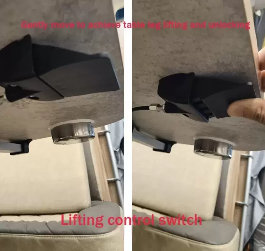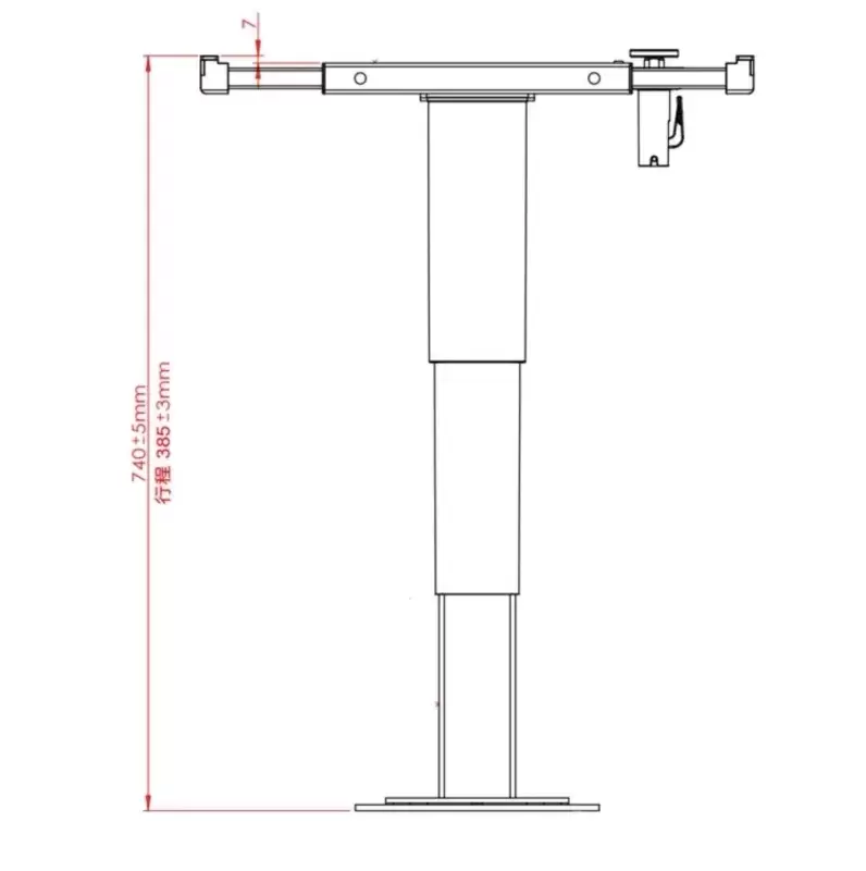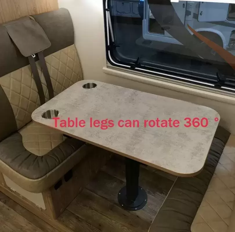 Pie de mesa telescópico negro deslizante en 4 direcciones y 360º giratorio con pie cuadrado para caravanas, autocaravanas y camper.