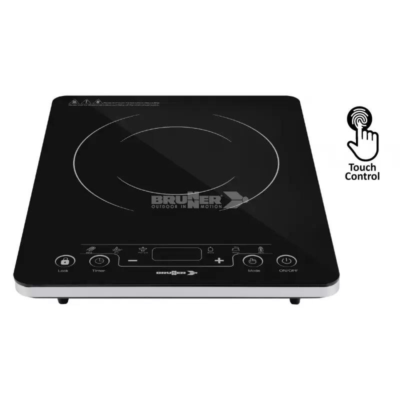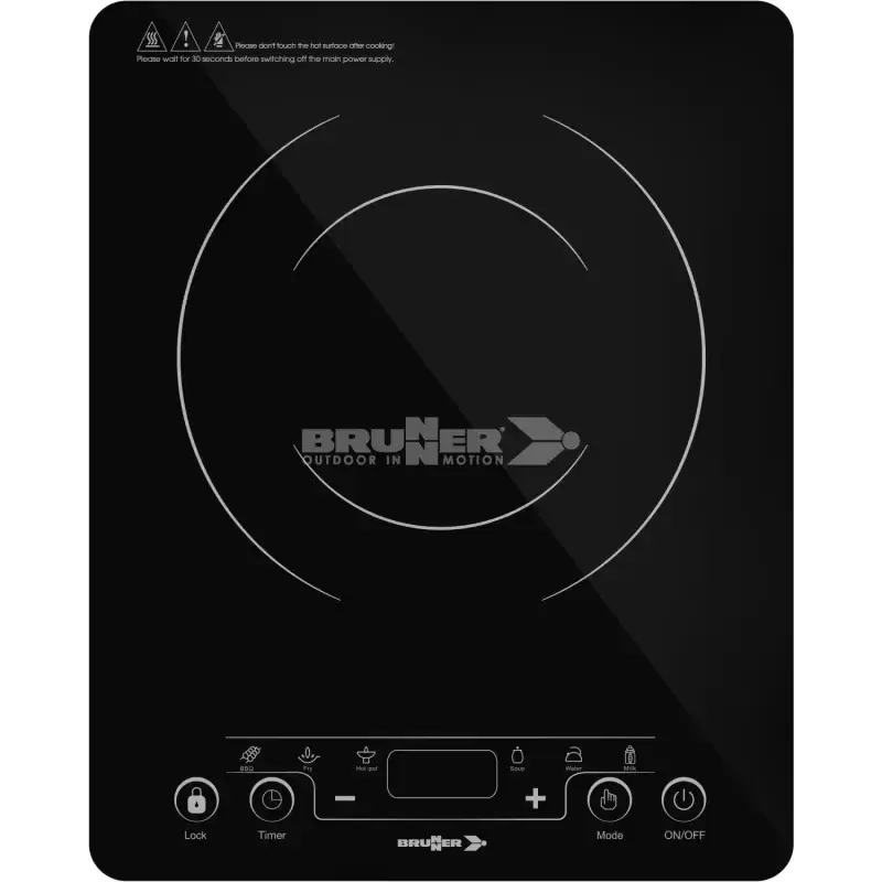 Placa de inducción de calor portátil con cuerpo de PP y superficie de cocción vitrocerámica de alta resistencia. Perfecto para su uso en exteriores y en campamentos gracias a su bajo peso y a sus 9 niveles de potencia (300 - 2000 W) seleccionables mediante el interruptor Touch Control y la pantalla LED. Con potente ventilador y orificios de ventilación.