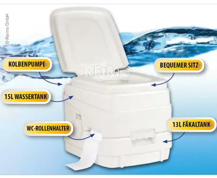 Higiene perfecta .. Fácil de usar, baños químicos portátiles de la más alta calidad. Tamaño compacto para mantener técnicamente sofisticado y fácil de limpiar. Se compone de dos partes, desde la parte superior con el asiento, la tapa y depósito de agua fresca (15 litros) y la parte inferior con el depósito de aguas residuales (10 litros) y dispositivo de cierre. partes superior e inferior están conectadas por un cierre de plástico. La parte inferior está provista de un mango robusto y se puede cerrar herméticamente, por tanto, el transporte y la eliminación de aguas residuales de una manera conveniente . Asiento del inodoro antibacteriano evita la formación de hongos y bacterias, bomba de mano sólido y práctico con un gran volumen de descarga de 15 litros de agua es suficiente para alrededor de 125 lavados válvula de ventilación , Todos los componentes de plástico de alta calidad de diseño muy robusto, base herméticamente cerrado para el transporte conveniente para la ubicación de vaciado.