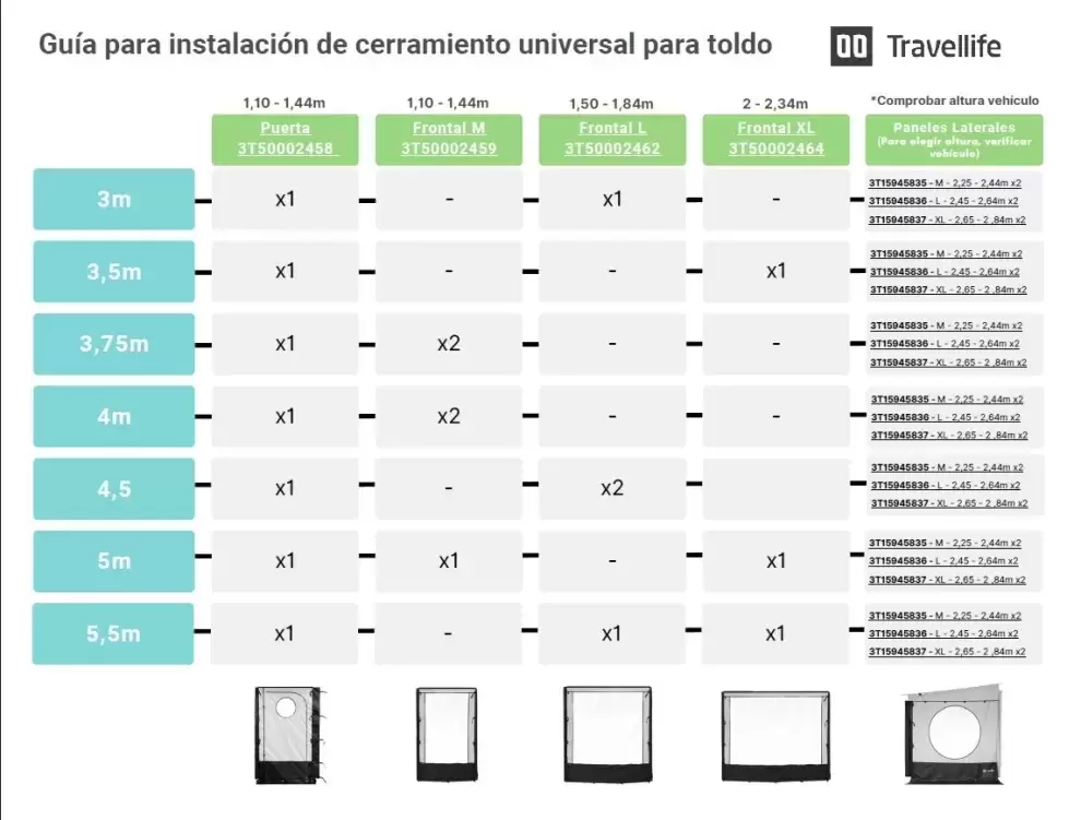 ¡ATENCIÓN! Ante cualquier duda consúltenos por Whatsapp (+34642834030) con la medida de toldo y la altura desde el suelo hasta la carcasa del toldo y le indicaremos las referencias que necesita.