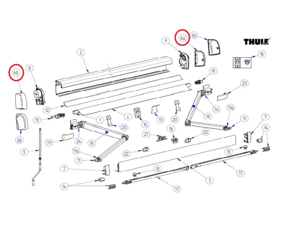 Recambio tapas laterales toldo Thule 4900 color blanco para autocaravanas.