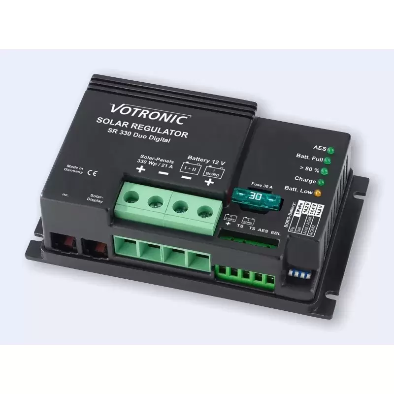 - Terminal "AES" con pantalla LED: Conmutación automática para los frigoríficos Dometic / Electrolux de operación a gas a 12 V en caso de suficiente energía solar por medio de "AES" (Selector automático de la Energía)