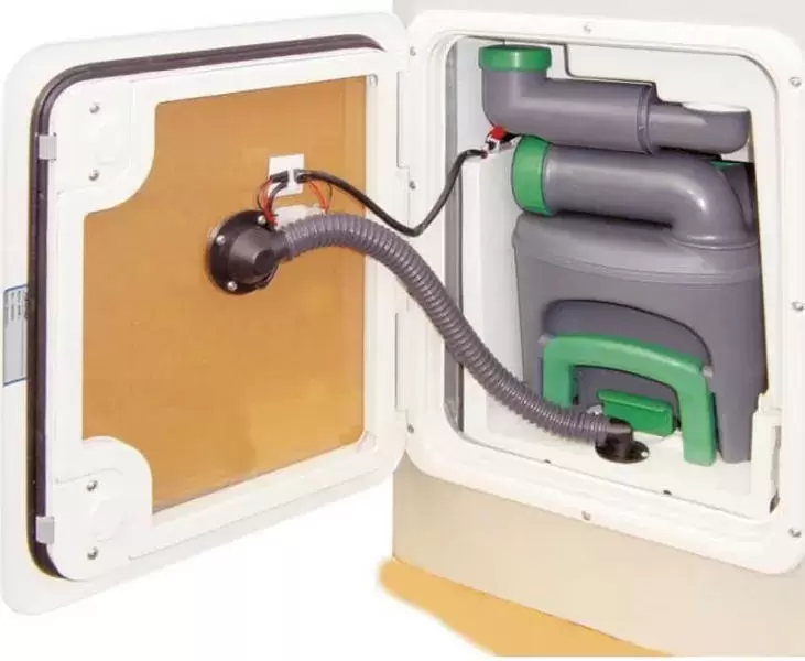 Extractor de aire especialmente desarrollado 12 V / 0,43 W. Extrae los olores desagradables y la pasa a través de un filtro de carbón activado para el exterior. El uso de productos químicos es innecesario. Fácil instalación para todos los inodoros Thetford. Viene con todos los accesorios e instrucciones de instalación.