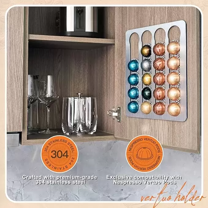 Soporte acero inoxidable para cápsulas de cafeteras Nespresso, caravanas, autocaravanas y camper.