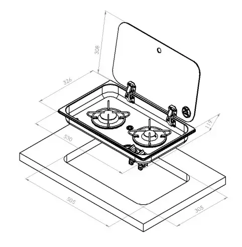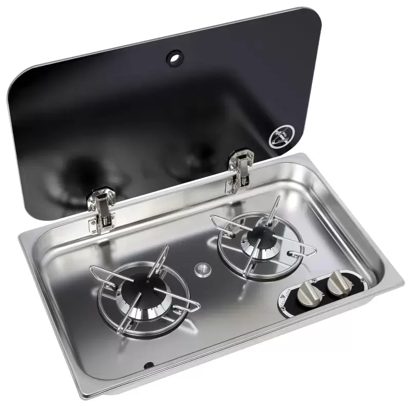 Tapa de cristal 4 mm cocina 2 fuegos NAVY LOAD NL21002 para caravanas, autocaravanas y camper.