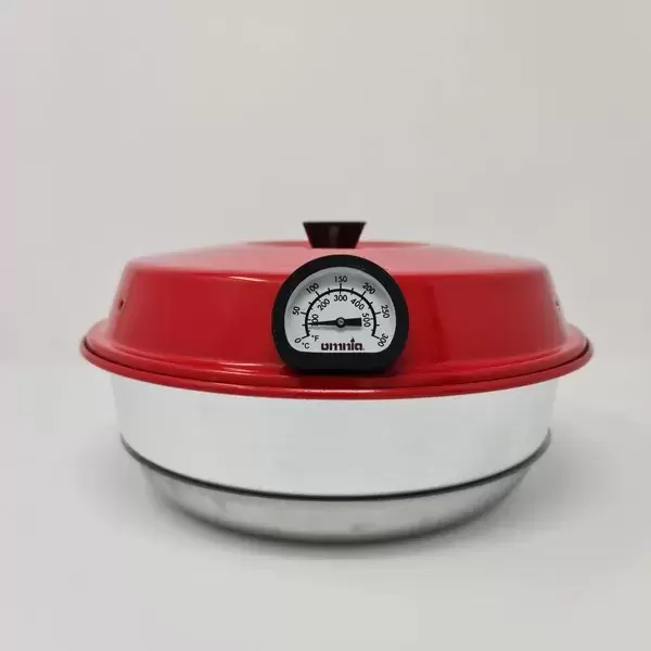 Un elegante termómetro con el que se puede controlar y ajustar la temperatura del proceso de cocción si es necesario.