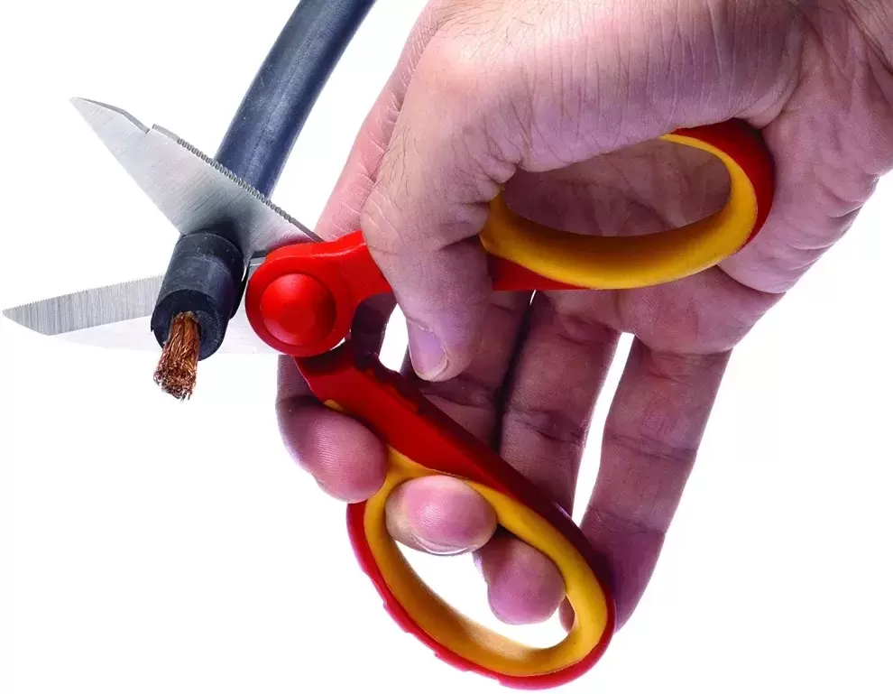Tijeras electricista Fumasi de Acero Vanadio con cuchillas microdentadas 5,75" 145 mm.