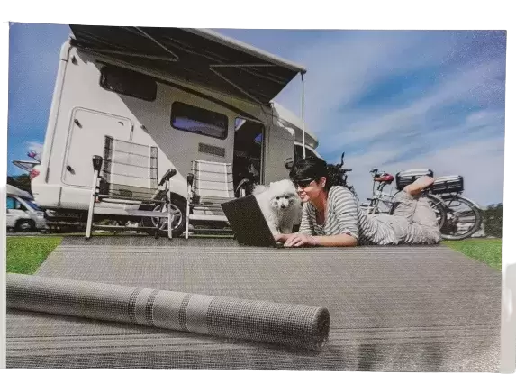 Toldo para suelo 250 x 450 color gris/blanco para autocaravana, caravana y camper