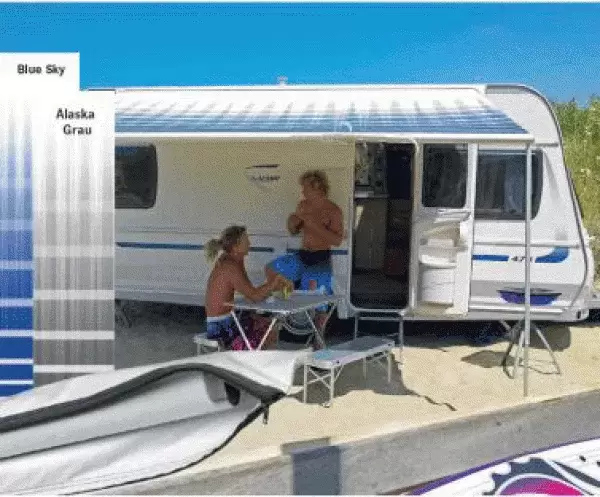Toldo Thule Caravan Style muy cómodo de montar y con estructura de aluminio que le proporciona un perfecto montaje y gran rigidez , se guarda en una bolsa con todos sus elementos quedando colgada del junquillo para montar el avance.