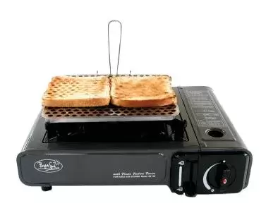 Con este simple tostador podra tostar  2 tostadas de una vez en su hornilla de gas, ademas se pliega ocupando menos espacio que un plato, ideal para caravanas y autocaravanas, funciona realmente bien.