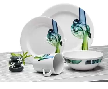Preciosa vajilla de melamina Lucca, 16 piezas para 4 personas. Juego de 4 platos (Ø 25,3 cm), 4 platos de postre (Ø 20,0 cm), 4 platos de sopa (Ø 15,2 cm) y 4 jarras (0,3 Ltr. Vol.). 100% melamina, alimentos seguros. Lavar a mano a una temperatura baja.