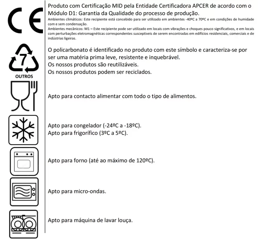 Apto para congelador y frigorífico, para horno (hasta120ºC), para lavavajillas y microondas.