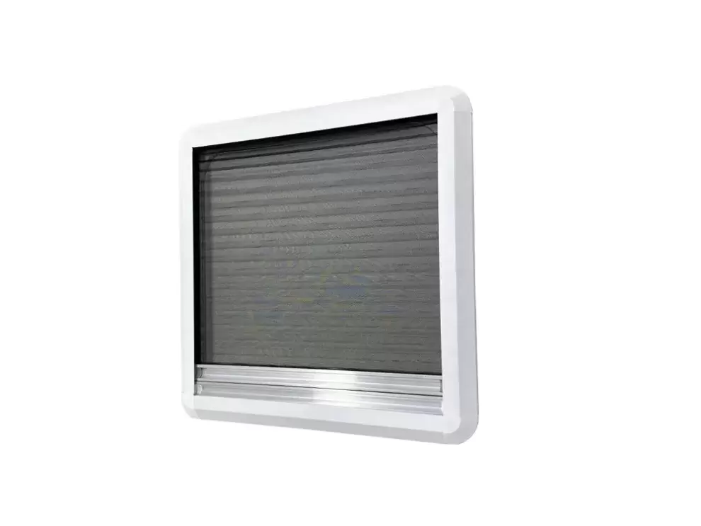 Ventana lateral  450X450 Masis marco aluminio AM + Persiana para camper y autocaravanas.