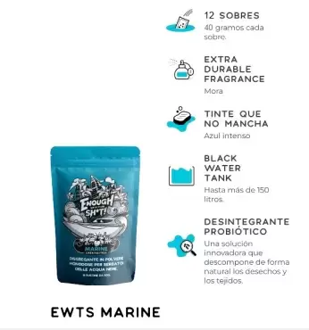 Black Magic Marine tratamiento ecológico de aguas negras 12 sobres de 40 gramos para caravanas, autocaravanas, camper y barcos. Referencia MA-DO-SH-BLK-002 35,00 €